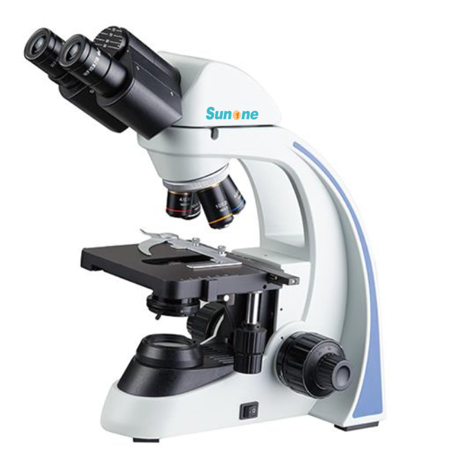 SUNONE SW100系列生物显微镜,整体结构设计、小巧且不缺刚性,机架两边贯穿式侧翼不仅起到点缀左右又让整机。看上去有了灵动性。两侧翼又贴上装贴生动的蓝色装饰品(可以选配颜色)、色彩丰富。弯圆弧的镜臂。采用镂空设计,在减轻重量的同时又符合了人体工程学、现实单手可以搬动。采用双目镜筒间距可调(50mm-75mm),以适应不同操作者的使用。对称安装在机身两侧的同轴粗动和微动手轮,左右手均可操作、方便调焦SW100系列生物显微镜致力于满足现代生物教学及基础医疗、科研不同领域的需求。